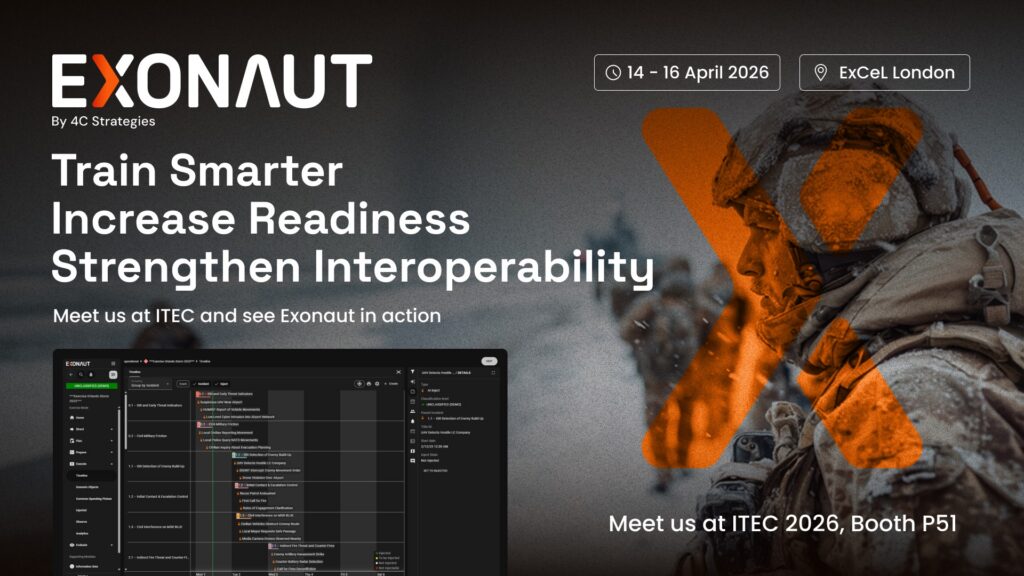 This recognition reflects 4C Strategies’ long-term commitment to excellence in training delivery through both its software and expert staff. The company’s Exonaut platform is used extensively by the British Army to plan, design, execute, and evaluate complex training and exercises around the globe. Exonaut is also trusted by NATO, the Australian Defence Force, the Swedish Armed Forces, and the United States Army, among others.
